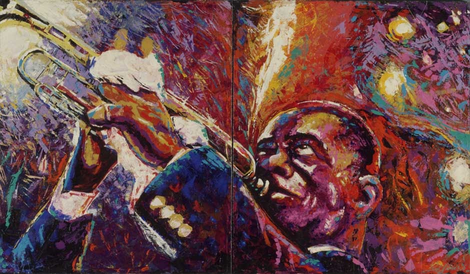 From whimsical dancers to funky jazz musicians, Ruel James captures fervor and zeal in his abstract artwork through the use of vibrant colors and unique design. His abstract pieces feature artists such as Dizzy Gillespie and Louis Armstrong as well as exotic models from around the world.